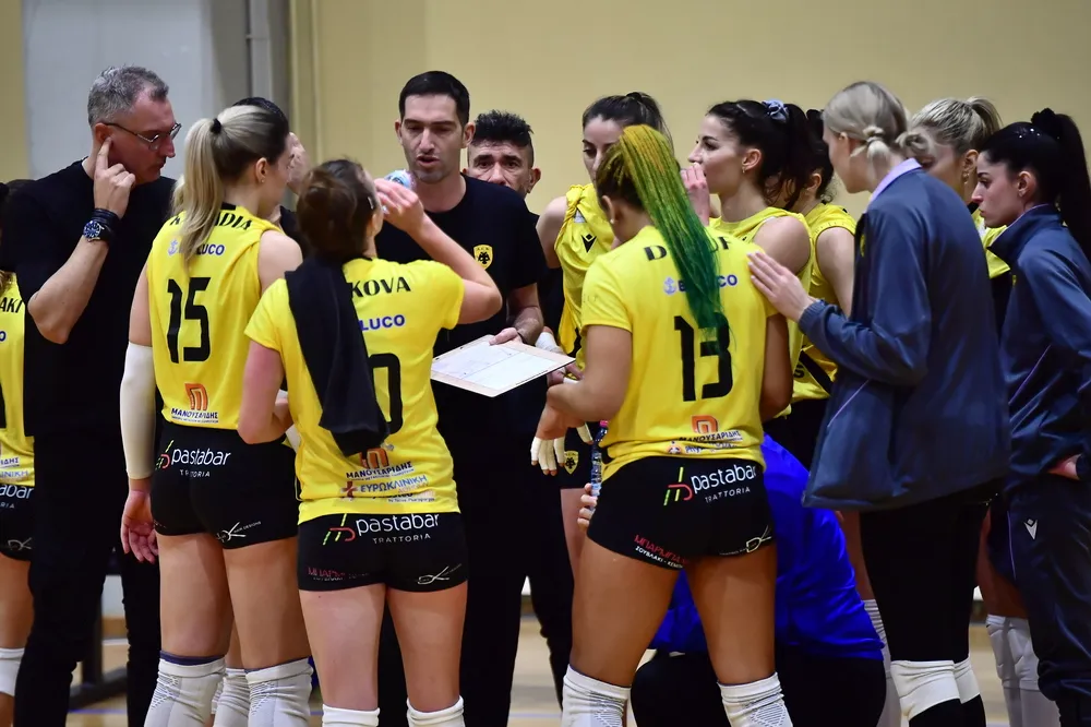 Παρά τα χαμόγελα για το «διπλό», όλοι στην ΑΕΚ «βράζουν» με το ξεκάθαρο διπλό λάθος στο οποίο υπέπεσε η διαιτητική ομάδα καθώς στο δεύτερο σετ το 23-25 μετατράπηκε με το «έτσι θέλω» σε 24-24 και εν συνεχεία, στερήθηκε η ΑΕΚ και το δικαίωμα της ισοφάρισης σε 25-25 από νέο διαιτητικό σφάλμα.Το παιχνίδι ξεκίνησε δυναμικά, με την ΑΕΚ να παίρνει από νωρίς προβάδισμα με 2-5 και 5-13. Τα καθοριστικά μπλοκ από την Καββαδία και την Φλιάκου έδωσαν «αέρα» 10 πόντων για τις «κιτρινόμαυρες» (7-17), χωρίς να αφήνουν κανένα περιθώριο αντίδρασης στον Πανιώνιο.