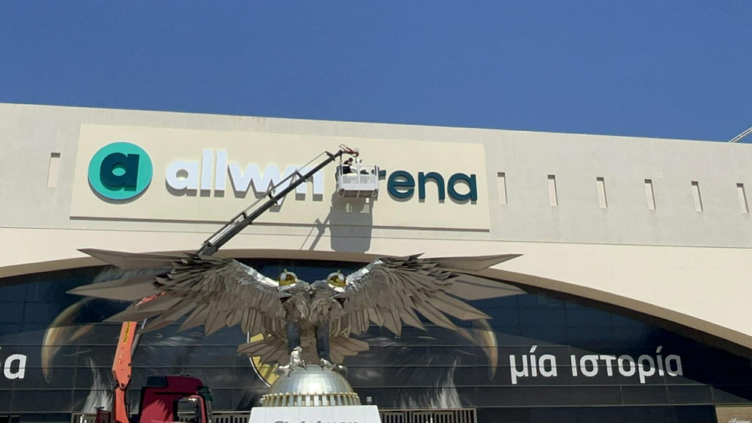Από μπλε σε άσπρη μετατρέπεται σταδιακά η φωτεινή επιγραφή στην πρόσοψη της Allwyn Arena. Οι άνθρωποι της ΑΕΚ θεώρησαν ότι αυτό το χρώμα ήταν το καλύτερο και οι εργασίες προχώρησαν άμεσα.