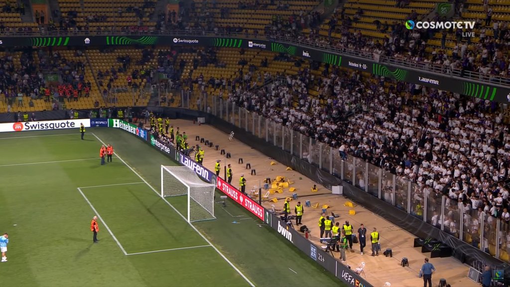 Τα έκαναν… λαμπόγυαλο οι οπαδοί του Ολυμπιακού και της Φιορεντίνα κατά τη διάρκεια του τελικού του UEFA Europa Conference League σε αντίθεση με όλες τις εγγυήσεις των προέδρων τους αλλά και της UEFA.