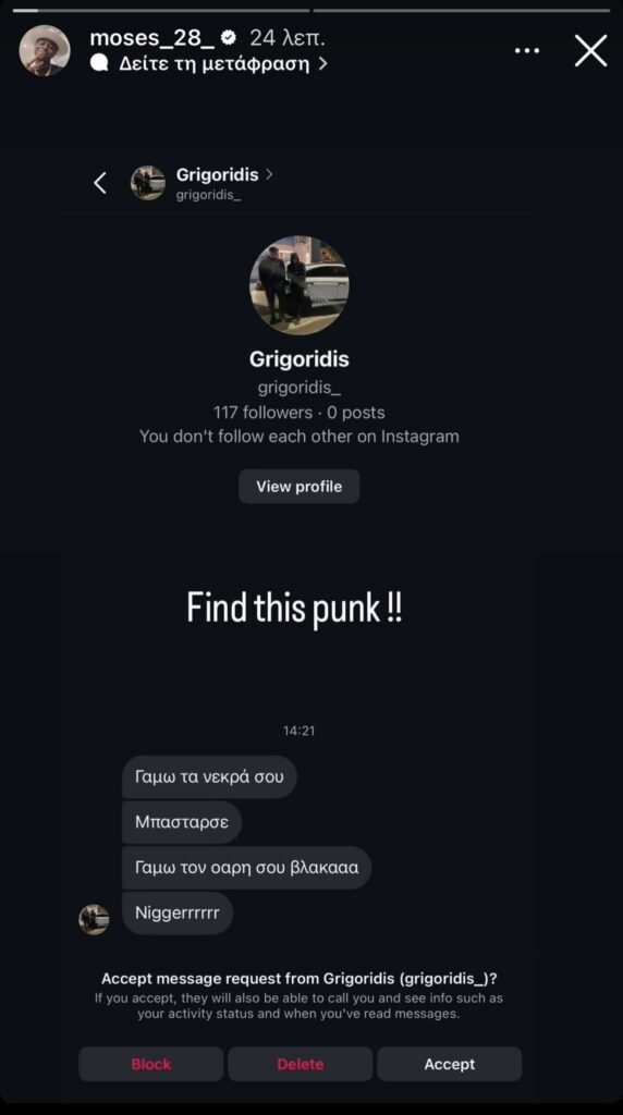 Ο Μόουζες Οντουμπάτζο τους… έκλεισε το σπίτι δίνοντας μία πολύ μεγάλη πρόκριση στην ΑΕΚ, αλλά οι οπαδοί των ασπρόμαυρων τα έβαλαν με αυτόν και μάλιστα του έστειλαν και… ρατσιστικά μηνύματα, όπως αποκάλυψε ο Άγγλος μέσω social media. Δείτε τη σχετική ανάρτησή του: