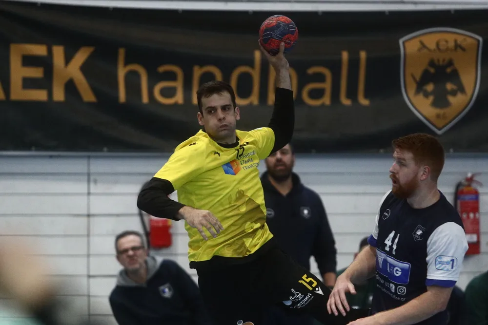 Ισοπαλία για την ομάδα χάντμπολ της ΑΕΚ απέναντι στον ΠΑΟΚ. Οι δύο ομάδες πήγαιναν χέρι-χέρι καθ’όλη τη διάρκεια του αγώνα, και η ΑΕΚ πήρε μικρό προβάδισμα (21-23) λίγο πριν την λήξη, ο ΠΑΟΚ μείωσε σε 23-24 και η ΑΕΚ έχασε την μπάλα μέσα από τα χέρια της για να ισοφαρίσουν οι Θεσσαλονικείς στην αντεπίθεση. Η ΑΕΚ συνεχίζει να είναι στην κορυφή, ισόβαθμη με τον ΠΑΟΚ στους 11 βαθμούς.