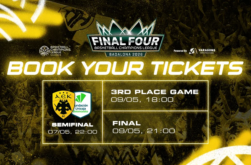 “Η ΑΕΚ ΒC ενημερώνει, ότι ξεκίνησε η ηλεκτρονική διάθεση εισιτηρίων για το F4 του BCL 2025-2026, οι αγώνες του οποίου θα διεξαχθούν στο Palau Municipal d’Esports de Badalona.