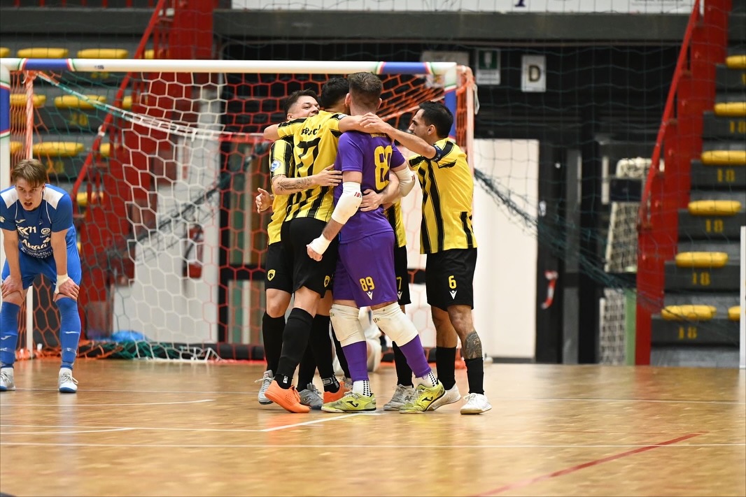 Όπως και στο πρώτο ημίχρονο, έτσι και στο δεύτερο, η ΑΕΚ ξεκίνησε με γκολ. Ο Φελιπίνιο με ωραίο τελείωμα έκανε το 1-3 στο 21:33, δίνοντας προβάδισμα δύο τερμάτων στον «Δικέφαλο». O Mιχαλίτσης σταμάτησε την προσπάθεια του Πόντα στο 25′, ενώ ακολούθησαν σωστά μπλοκαρίσματα των «κιτρινόμαυρων» σε επιθετικές προσπάθειες των Ιταλών. Οι Ιταλοί ανέβασαν ακόμα περισσότερο ρυθμούς και κατάφεραν να σκοράρουν δύο φορές, στο 31′ και το 33′, ισοφαρίζοντας σε 3-3. Ο Μιχαλίτσης πραγματοποίησε μεγάλες επεμβάσεις, διατηρώντας την ισοπαλία, ενώ στην άλλη πλευρά του γηπέδου η ΑΕΚ απείλησε με τους Νενέ, Λίμα και Ταρνανίδη χωρίς επιτυχία. Στο 39′ ο Βιτίνιο επιχείρησε το σουτ, αλλά χωρίς να βρει στόχο, με το 3-3 να μένει μέχρι το τελικό σφύριγμα.