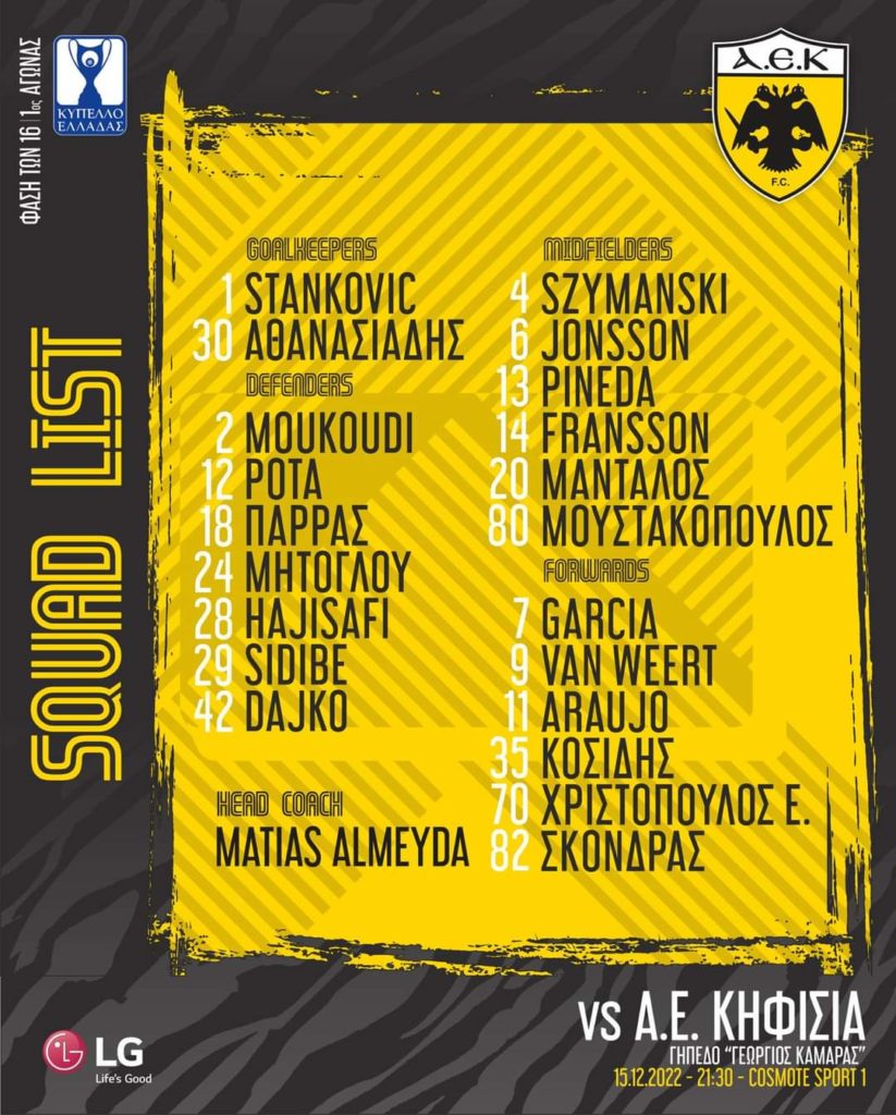 Η αποστολή της ΑΕΚ: