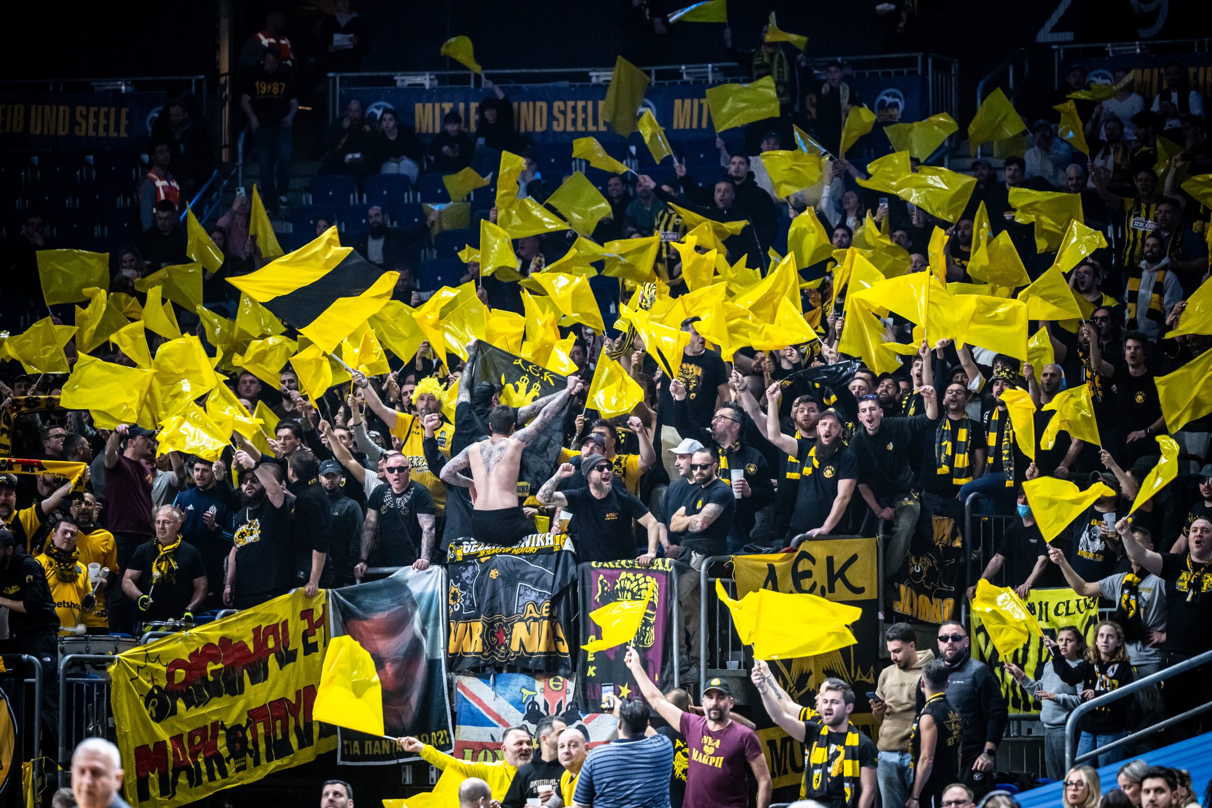 Χαμός από τον κόσμο της ΑΕΚ και στο Βερολίνο, όπου η Βασίλισσα επικράτησε με 88-93 στην παράταση επί της Άλμπα και έκανε το 6/6 στον όμιλό της.