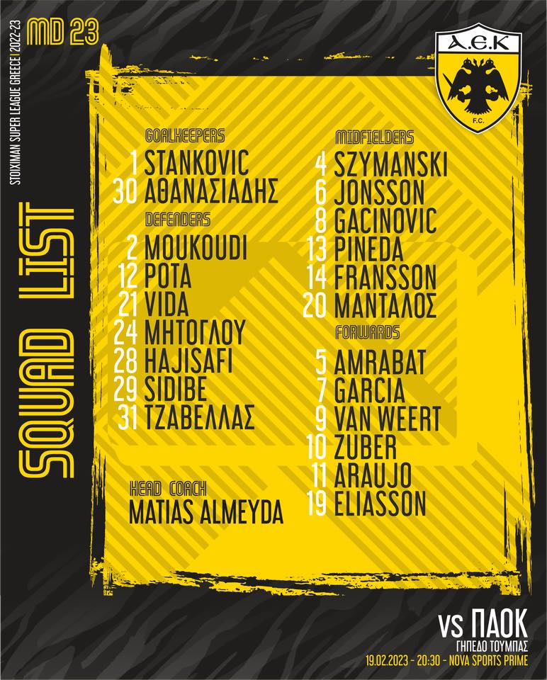 Ολοκληρώθηκε και η σημερινή προπόνηση της ΑΕΚ στα Σπάτα, τελευταία πριν τον αγώνα απέναντι στον ΠΑΟΚ στην Τούμπα! Ο Σέρχιο Αραούχο προπονήθηκε κανονικά και μπήκε στην αποστολή, σε αντίθεση με τους τραυματίες Μοχαμάντι, Φερνάντες, Μαχαίρα, αλλά και τον Γαλανόπουλο που ένιωσε ενοχλήσεις σήμερα.