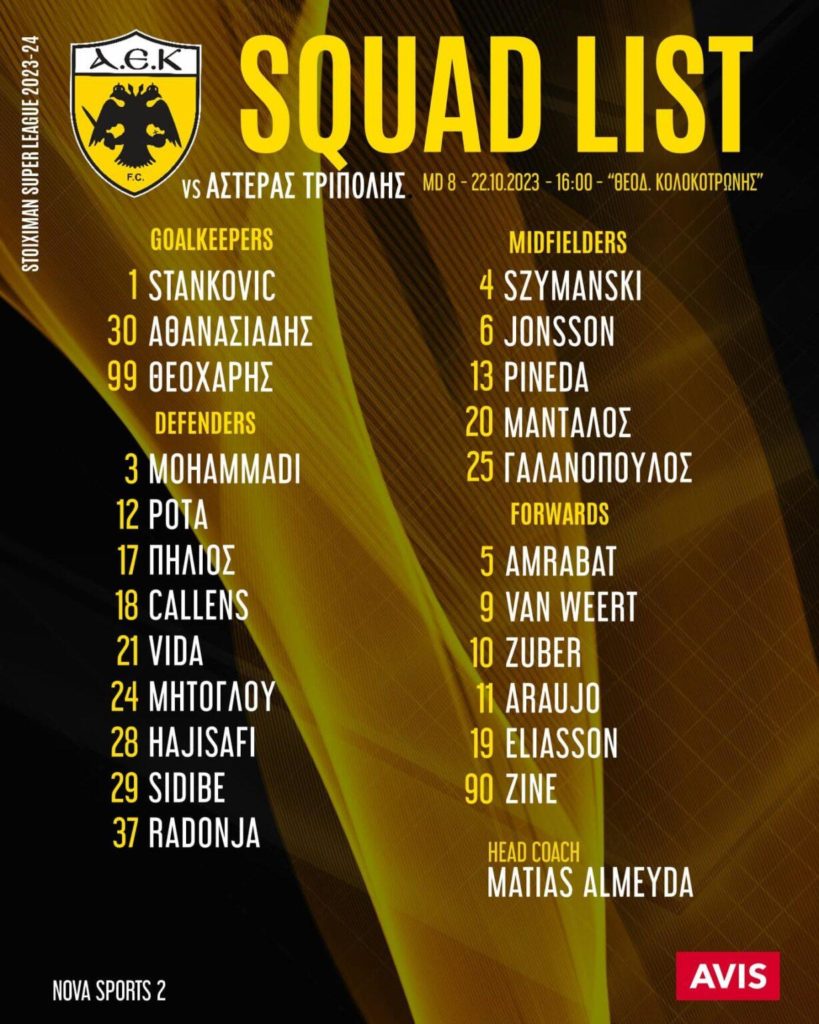 Εκτός των τραυματιών Γκαρσία, Γκατσίνοβιτς και Πισάρο, η ΑΕΚ δεν θα έχει στη διάθεσή της ακόμη δύο ποδοσφαιριστές! Συγκεκριμένα, ο Ματίας Αλμέιδα άφησε εκτός αποστολής τους Μουκουντί και Πόνσε λόγω ενοχλήσεων στην τελευταία προπόνηση. Να θυμίσουμε πως η ΑΕΚ μεσοβδόμαδα (Πέμπτη) έχει νέα δύσκολη αποστολή, αυτή τη φορά στην Μασσαλία για την 3η αγωνιστική του Europa League.