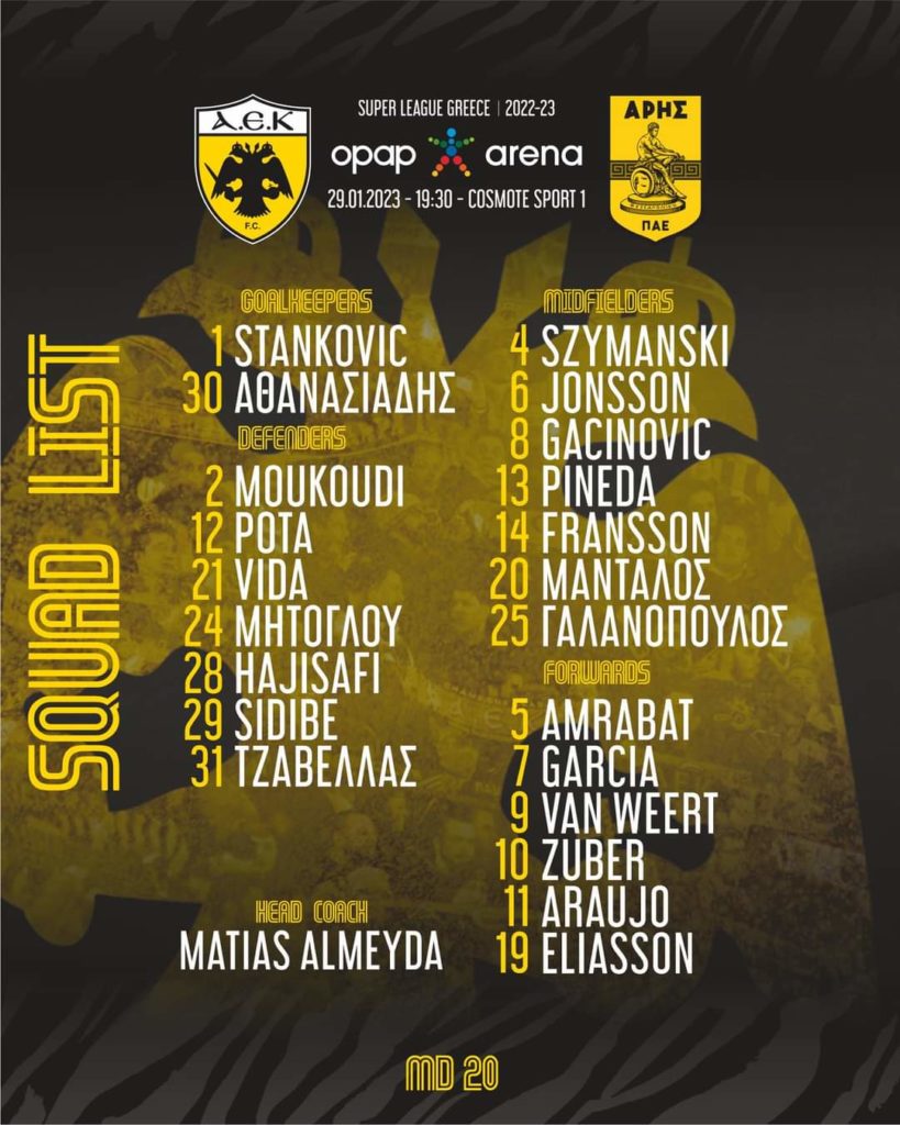 Έσπασε όλα τα ρεκόρ ο Ελίασον που είναι πανέτοιμος και μπήκε στην αποστολή για τον ΑΕΚ – Άρης. Παράλληλα, στην αποστολή βρίσκεται και ο Γκαρσία, με μοναδική απουσία τον Μοχαμαντι! Η αποστολή της ΑΕΚ: