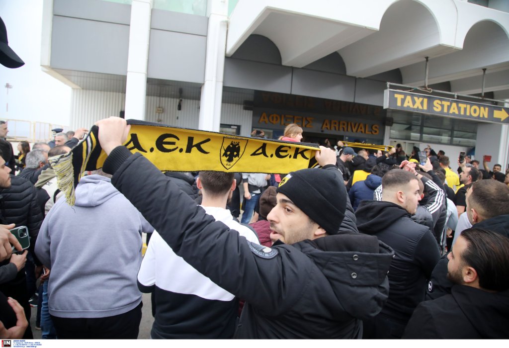 Στο αεροδρόμιο του Ηρακλείου Κρήτης έφτασε πριν λίγη ώρα η αποστολή της ΑΕΚ για τον αυριανό αγώνα στην έδρα του ΟΦΗ. Η Ένωση αποθεώθηκε από 500 περίπου φίλους της, που επεφύλαξαν θερμή υποδοχή και ζήτησαν από τους παίκτες το “διπλό”.